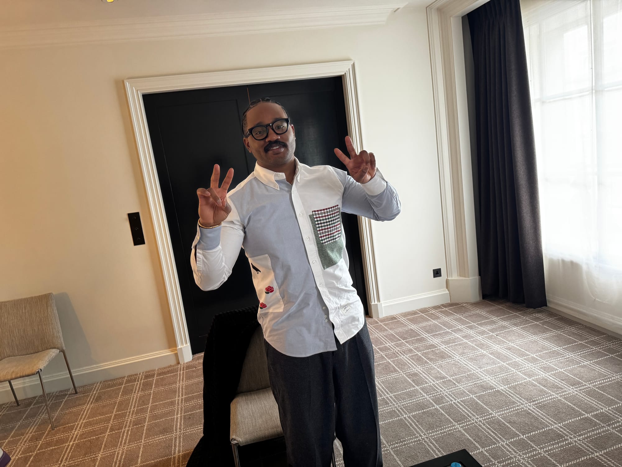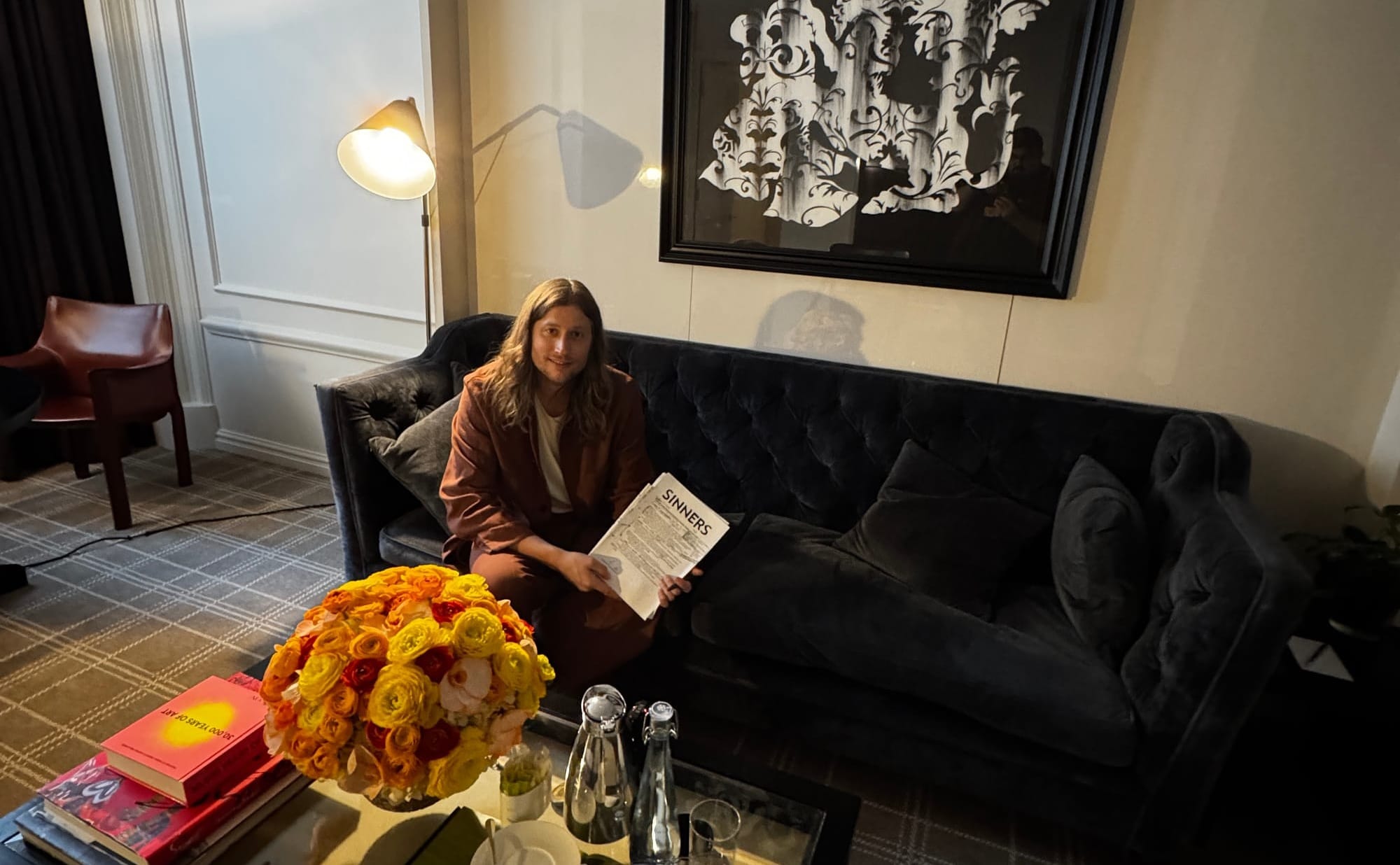 En konvoj av svarta minibussar står i kö under valvgången in till gårdsparkeringen tillhörande ett av de mest väldiga och överdådiga hotellen i London. Det är i mitten av april, tidig vår i den engelska huvudstaden och ovanligt livligt för att vara söndag eftermiddag. Några meter bort, i stark kontrast till bilarna, inuti den sju våningar stora Belle Époque-byggnadens dunkelt belysta extravaganta lobby, bland väggtäckande målningar och mörka lampetter och marmortrappor, syns gäster klädda i briljant färgglada vackra saris. Utanför hissarna tre våningar upp står en affisch med en brinnande solnedgång på lutad mot ett staffli – samma som täcker väggar utmed Londons tunnelbanestationer, samma som på sidan av stadens ikoniska röda dubbeldäckarbussar – och skyltar att allt bakom den handlar om ”Sinners”. Därifrån hörs varken eventuella bröllopsförberedelser nedanför eller storstadsbuller utanför, bara röster från tv-intervjuer som hålls i flera rum samtidigt tillhörande dubbla huvudrollsinnehavaren Michael B Jordan, birollsinnehavarna Wunmi Mosaku och Miles Caton och Jayme Lawson, filmens näst största namn Hailee Steinfeld, dubbla Oscar-vinnande kompositören Ludwig Göransson, samt filmens regissör och manusförfattare Ryan Coogler.